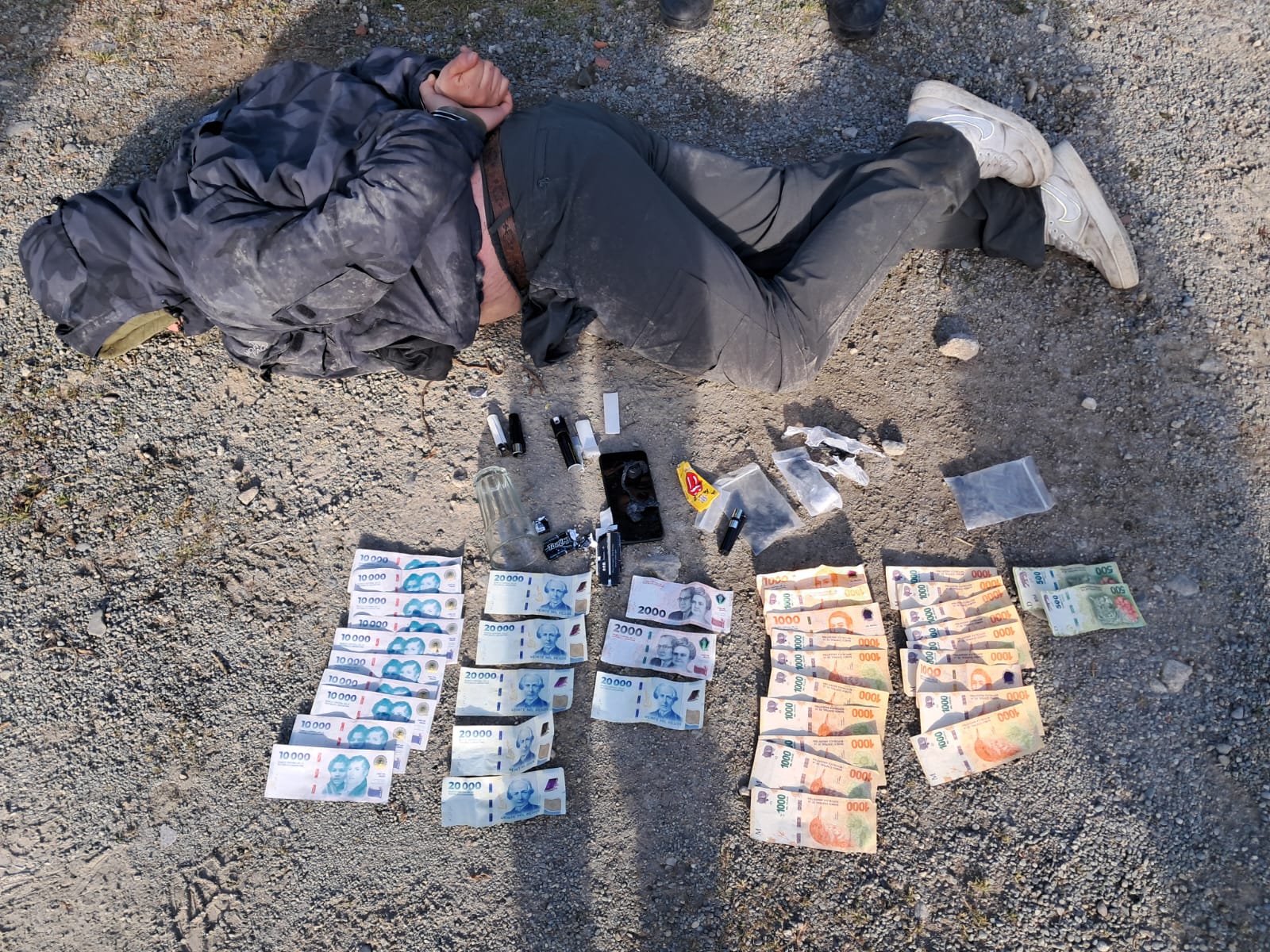 En una inspección de rutina, autorizada por la Justicia, los uniformados detectaron que el sujeto tenía estupefacientes fraccionados, distribuidos en envoltorios individuales, como así también dinero en efectivo, presumiblemente producto de su comercio ilegal.